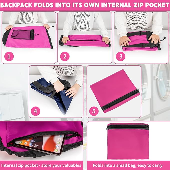 - 【Extra Pocket & Foldable】Front mesh pocket with drawstring closure provides extra storage space for laundry detergent or fabric softener. Interior zipper pocket (10.2" x 7.8") can store coins, wallet and cell phone. When not in use, flip the interior zipper pocket and fold the laundry backpack inside for storage