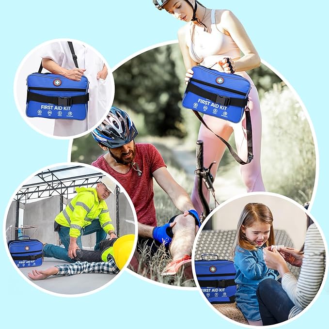 Professional 435 Pieces Large First Aid Kit - Includes Compressed Gauze - Compartments Emergency Medical Kit for Home, Camping, Backpacking, Travel, Boat, Car,Outdoors (Blue)