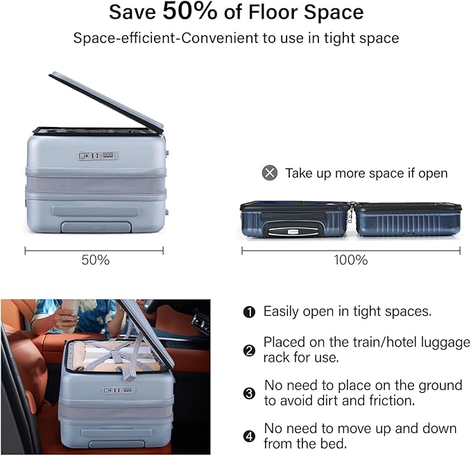 - Revolutionary Top Opening Trunk Design: Unlike traditional luggage, our Top Opening Luggage functions as true Trunk Luggage. Access contents vertically without floor space – perfect for tight airport queues or car trunks. Doubles as a sturdy storage solution at home
