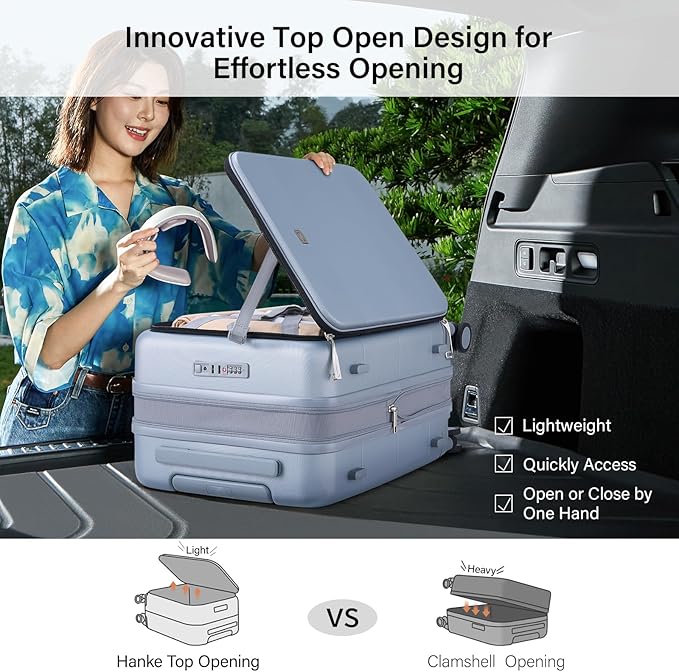 - Durable 3-Layer 100% PC Hard Shell: hanke hardside suitcase delivers exceptional impact resistance without the bulk. The shatterproof material prevents cracking. Lightweight yet 30% tougher than standard checked luggage materials – perfect for rough baggage handling