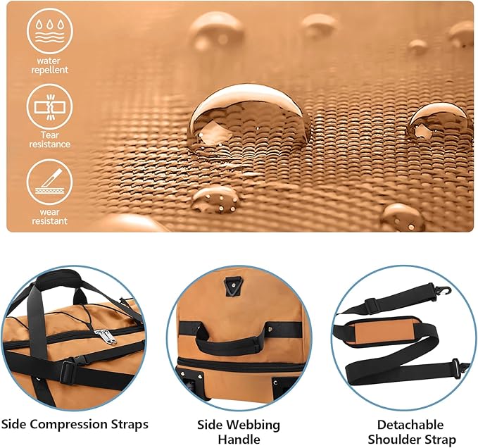 - [NO-TELESCOPE-HANDLE ADVANTAGE]:Lightweight, handle-free design with compression straps and a bungee system for stability