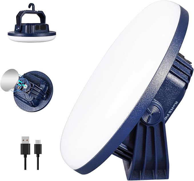 - [Hanging & Magnetic design] : Our camping lantern added a hook can hang the lamp on branches or tents and easy to carry on your backpack. The stand can rotate 90 degrees, allowing you to choose the most suitable lighting angle, The built-in powerful magnet on the back can attach it to metal surface anywhere you want.