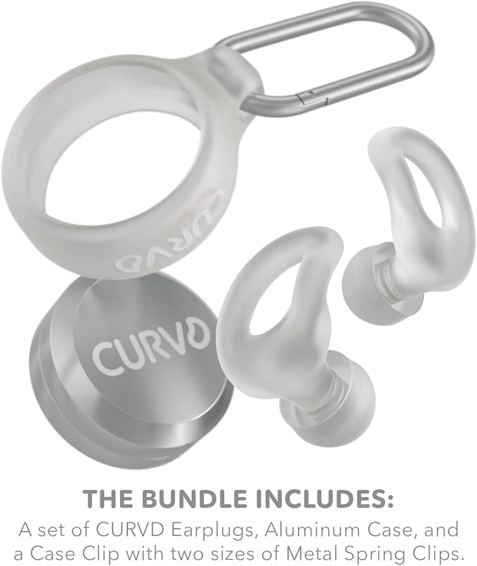 - INCLUDES: 1 set of reusable and easy-to-clean Curvd Earplugs, 4 sets of ultra-soft ear canal tips, 1 compact & sleek aluminum carrying case. FSC-certified sustainable, eco-friendly packaging. The CURVD Case Clip includes a premium soft-touch silicone sleeve (available in 6 stunning colors) and two satin nickel alloy spring clips. A small circle clip for discreet placement and a larger oval clip for easy on-and-off attachment.