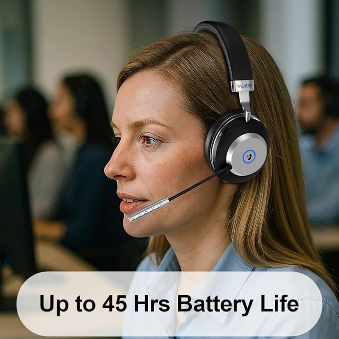 Wantek Wireless Bluetooth Headset with Microphone, USB Dongle for PC/Laptop, 45Hrs Playtime, Mute & Call Controls with Busy Light,Comfortable On-Ear Design for Work Calls, Teams, Zoom, Skype
