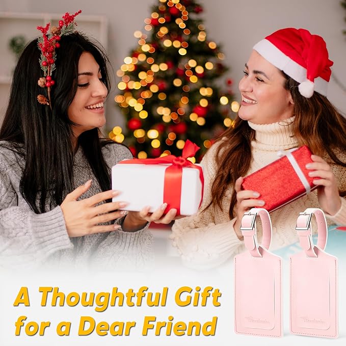 Travelambo Luggage Tags for Suitcases Faux Leather Privacy Protection 2 Pack Bag Tags Travel Accessories Essential, Light Pink