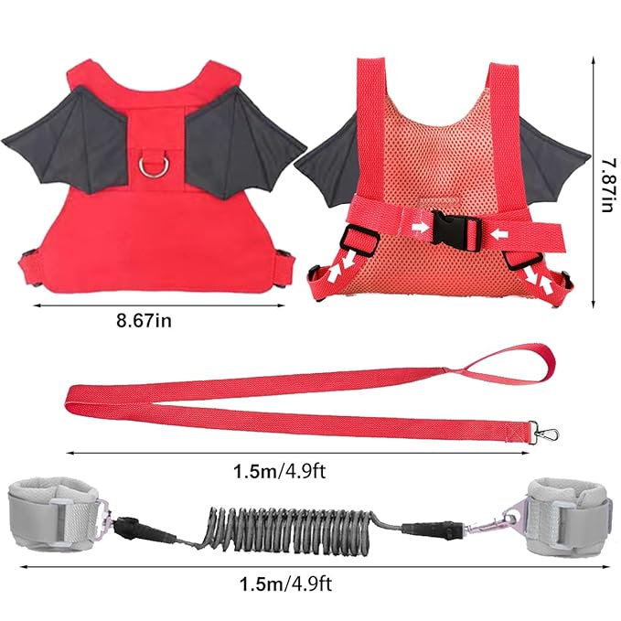 - Toddler Harness With Leash: Harness with cute wings design, enough to attract your kids attention, your baby will love to wear it. The straps and buckles are freely adjustable to fit most children. The 360 rotary connector allows toddlers to walk and even run freely,and with the same color webbing wrist rope. That’s Excellent Baby Keeper And Parents’ Helper