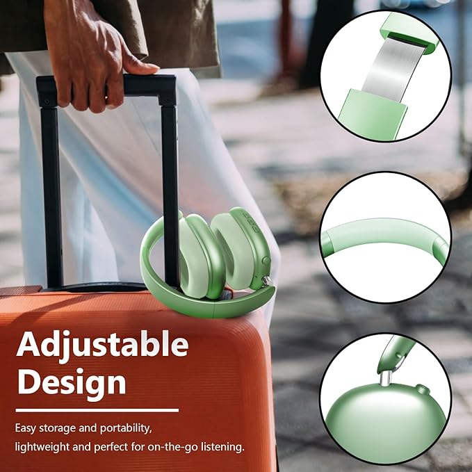 Wentronic Y01 Wireless Noise Canceling Headphones Bluetooth 5.3 Over Ear Headphones with Microphone, Hi-Res Audio, 48H Playtime, Foldable Comfortable Earpads,Compatible with iOS,Android,PC, Green