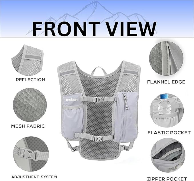 - LIGHTWEIGHT HYDRATION VEST: Made from lightweight, tear-resistant nylon fabric that withstands tough conditions while keeping the pack light. This running vest is equipped with a 1.5-liter hydration bladder, allowing easy, hands-free hydration during any outdoor activity. The bite valve ensures a leak-proof, simple drinking experience while on the move.