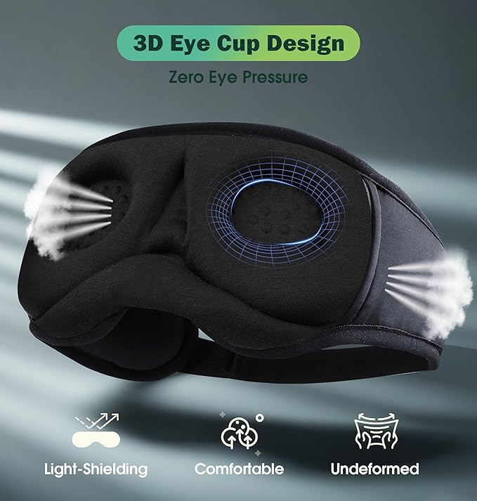 - 🌙 Total Darkness, Zero Pressure Fit: This bluetooth mask with bamboo fiber wicks sweat 3x faster than cotton – stay cool and dry all night. Zero pressure on eyes, 100% blackout for deeper sleep. No slipping, no squeezing—just a weightless, full-coverage fit that feels like a gentle hug for your head.