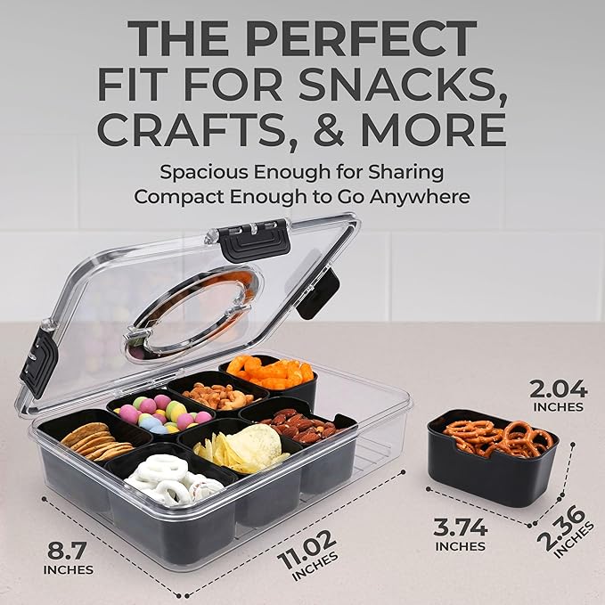 - [ Divided Serving Tray with Lid ]: Keep your snacks organized and fresh with our divided serving tray with lid. This snack divider container with lid ensures all your snacks stay separate and easy to access.