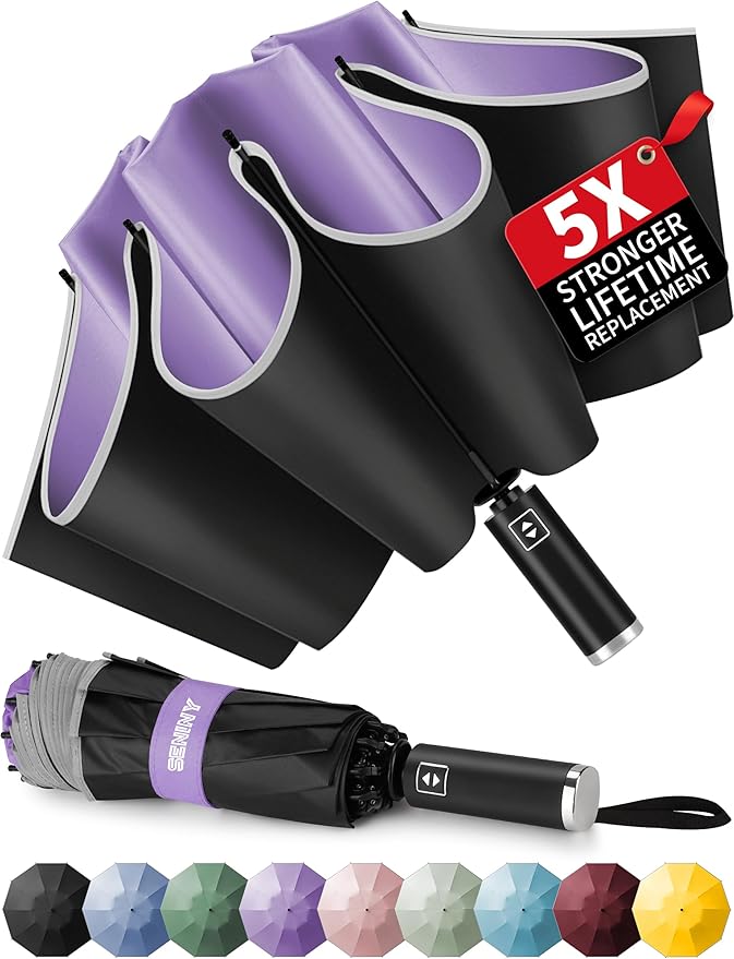 Seniny Windproof Travel Umbrella, Automatic Umbrellas for Rain, Portable & Compact Umbrellas for Backpack, Strong UV for Protection, Folding Small Sun Umbrella for Car, Walking