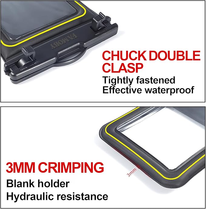 - Capacity: It can hold not only cell phones but also ID, credit cards, cash, and keys.Length x Width 8.49"x 4.52", 3MM crimping blank holder hydraulic resistance. Compatible for phone up to 8.3 inches; ideal phone water protector pouch for Apple iPhone,Samsung,huawei,xiaomi,Almost any cell phone; Sturdy lanyard on the top for easy carrying, Free your hand and have fun!
