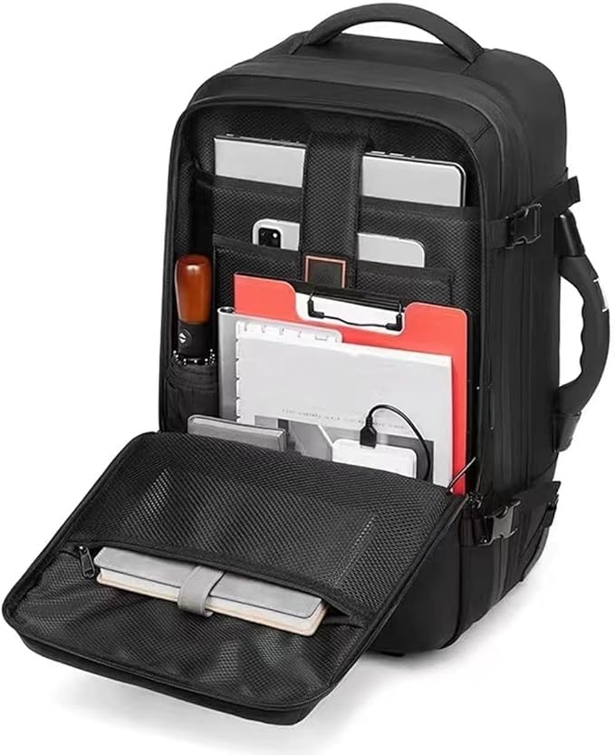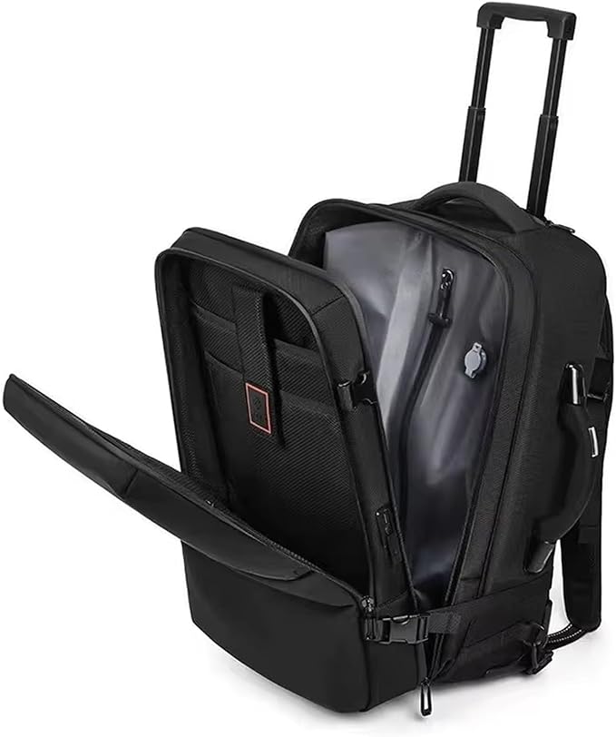 - Versatile Design: Combining a backpack and wheeled suitcase, this travel bag offers the convenience of both carry-on and checked luggage options.This backpack saves you the trouble of checked baggage. You can carry this vacuum packaging backpack directly on the plane, saving time and worry. It saves you the trouble of pulling a trolley case, but it is more functional than a trolley case