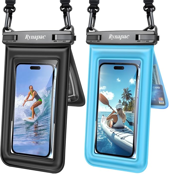 - 【Beach Vacation Essentials】- The Rynapac waterproof phone pouch is designed for outdoor activities such as beach vacation, cruise ship, fishing, swimming in pools, sailing, skiing, boating, kayaking, snorkeling, tubing, rafting, and other waterpark activities, so that you can keep your device away from water, dust, and snow, and enjoy life to the fullest