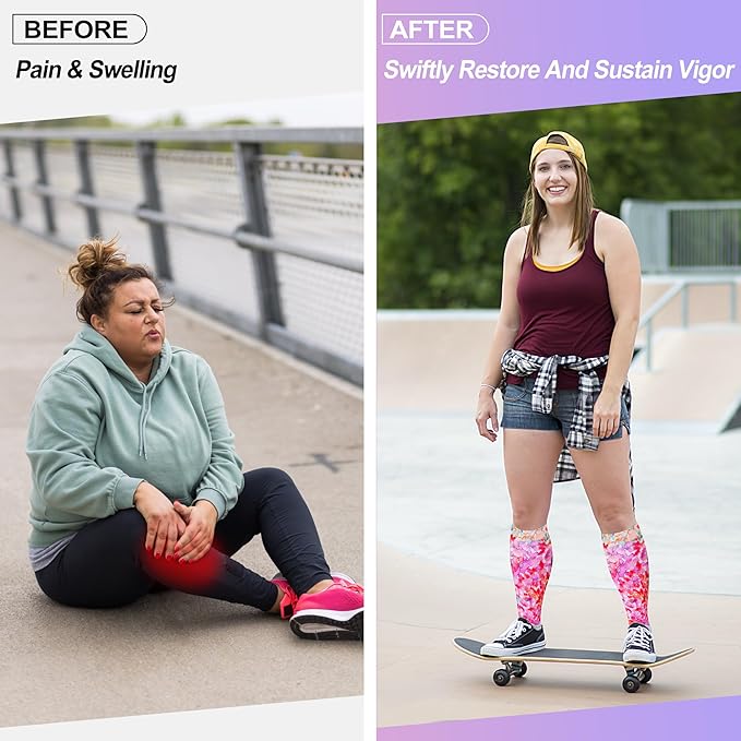 - Compression Socks for Women Plus Size: High-quality plus size compression socks are offer a compression grade of 15-20 mmHg. These socks effectively alleviate a range of blood circulation issues, including edema, lymphedema, neuropathy, blood clots, surgery, hypertension, swelling, muscle and leg pain, cramps, fatigue, and varicose veins.