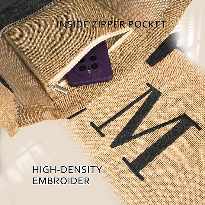 - Premium Burlap & Durability: Crafted from natural burlap with a laminated interior coating, this tote bag preserve your belongings from water, whether at the beach or during outdoor adventures. The removable bottom insert ensures the bag stands upright, while reinforced seams and soft canvas handles provide comfort and durability.
