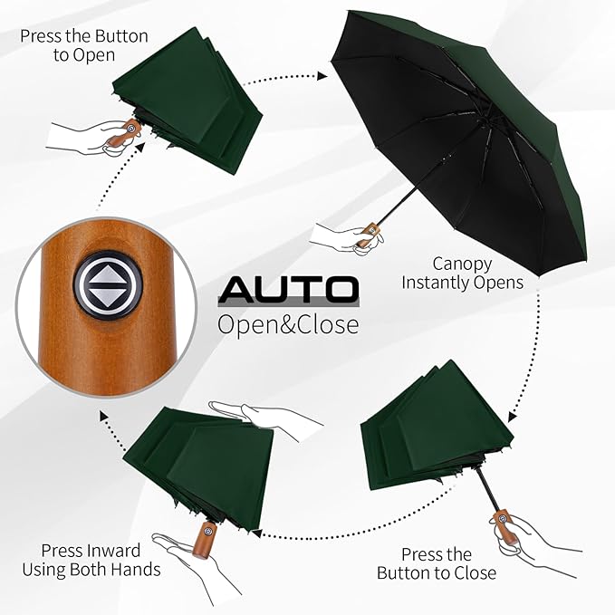 - Fully Automatic Umbrella:Enjoy ultimate convenience with our one-touch small umbrella. Just gently press the button, you can easily open and close this travel umbrella compact mini in seconds. For the fully automatic mechanism, one-hand operation is available to keep you dry while you're juggling bags, managing your phone or hopping in and out of your car.