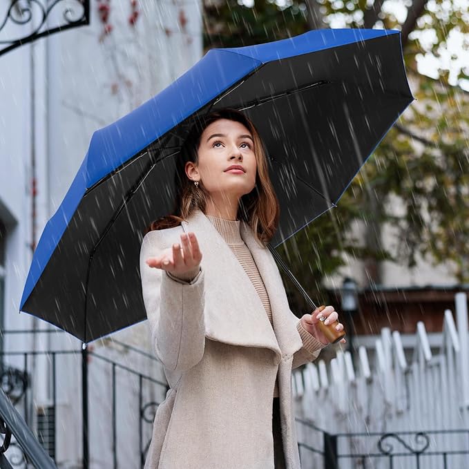 - Sun & Rain Protection:Backed by a black coating inside, our sun umbrella UV protection comes with UPF 50+ protection to reflect 99% harmful UV rays. Crafted from tightly woven, the canopy is water-resistant and quick-dry for rain protection and handy packing. A thoughtful mini umbrella for travel gives you dependable companion for all weather adventures.