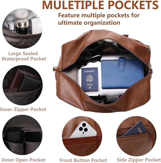 - 2.Durable & Water-Resistant Material for Lasting Use:Crafted from premium faux leather and rugged waterproof nylon, this weekender bag is built to withstand the rigors of travel. The reinforced stitching and robust zippers ensure exceptional durability, offering reliable protection for your belongings in various weather conditions.