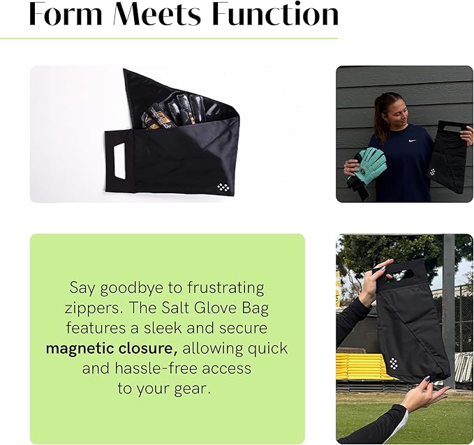- Magnetic Closure for Convenience: Say goodbye to frustrating zippers. The Salt Glove Bag features a sleek and secure magnetic closure, allowing quick and hassle-free access to your gear. Whether you’re in a rush or packing up after a game, this feature makes storing and retrieving your gloves effortless.