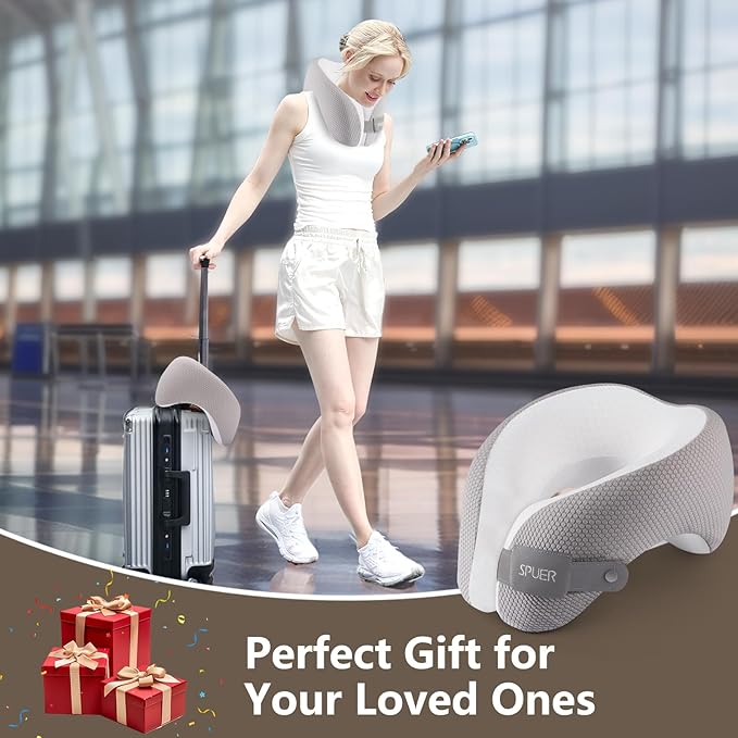 - 【The Perfect Gift for Every Traveler and Commuter】Looking for the ultimate travel pillow for airplanes? The SPUER travel neck pillow is a must-have for anyone who loves comfort and convenience! Whether for a birthday, holiday, or a special occasion, this pillow makes the perfect gift for travelers, commuters, or business professionals. Its sleek gray design and premium materials ensure it’s both stylish and functional, making every journey a luxurious, relaxing experience