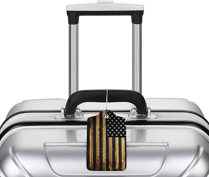 2 Pack Luggage Tags for Suitcase, Privacy Cover ID Label with Stainless Steel and Address Card for Travel Bag Backpack Cruise Ship Essentials Tag Women Men - Wood American Flag