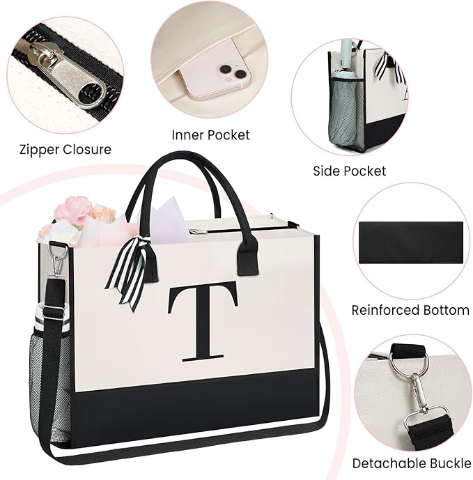 BAGAIL Initial Tote Bag, Personalized Birthday Gifts for Women, Teacher, Friends, Mom, Wedding, Monogrammed Beach Bag
