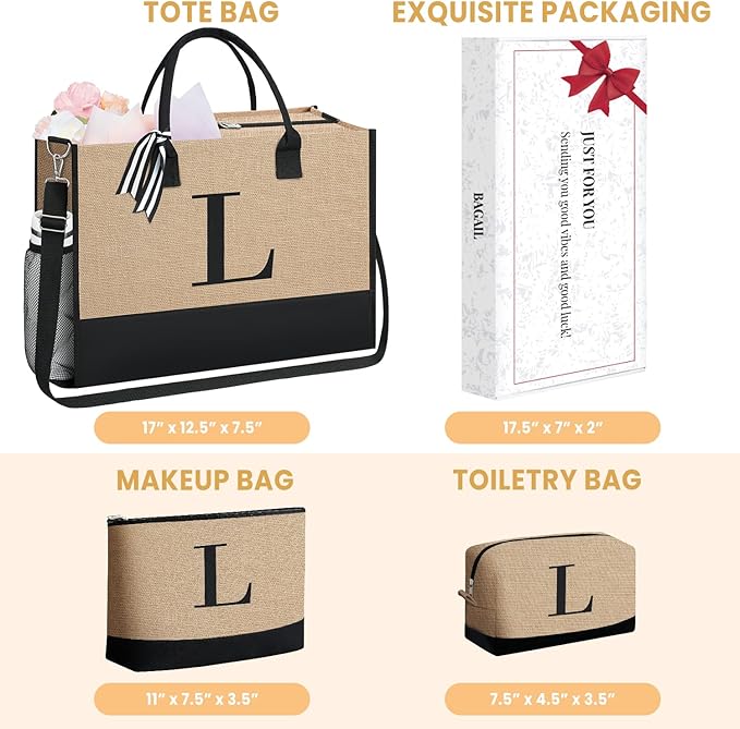 BAGAIL Initial Tote Bag, Personalized Birthday Gifts for Women, Teacher, Friends, Mom, Wedding, Monogrammed Beach Bag