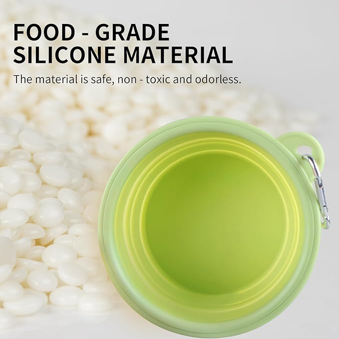 - Portable Collapsible Design - Space-saving foldable bowl features a built-in carabiner clip for hands-free carrying during hikes or Daily walk. The flexible silicone structure pops open instantly for meals and folds into compact storage. Lightweight yet durable for backpack pockets or pet travel kits.