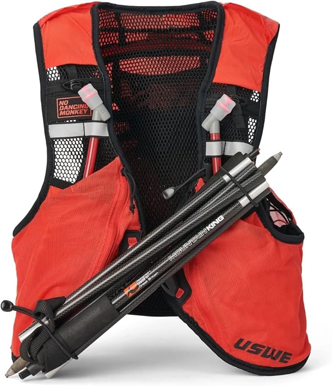 - HYDRATION ON THE GO: The vest doubles as a hydration pack. It includes two 500ml Ultraflasks, an inner No Bounce Compression Pocket, and front pole attachment.
