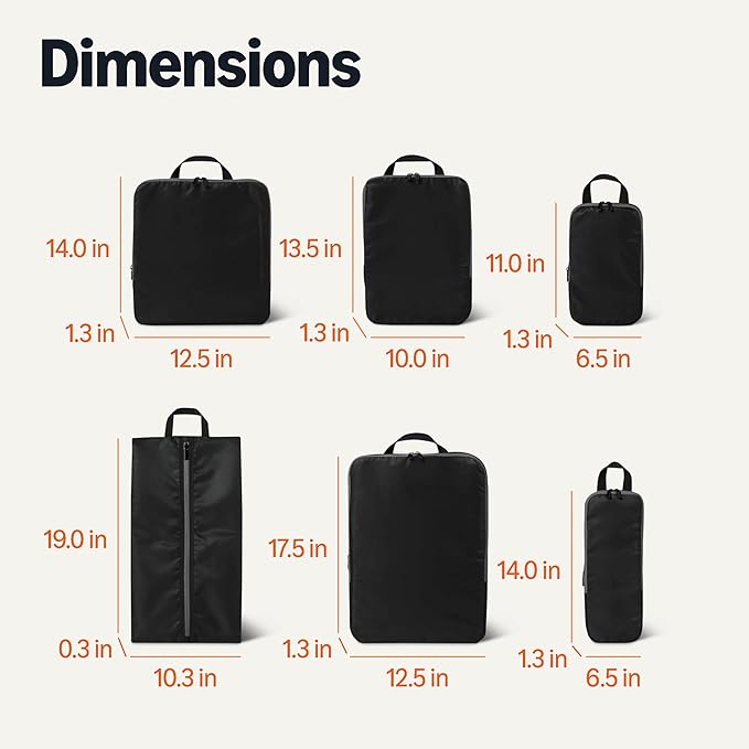- Packing organizer cube (6-pack) in Black for storing items; ideal for travel or home