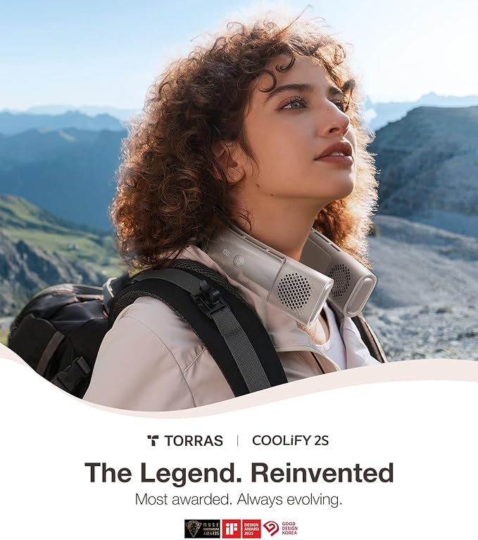 TORRAS COOLiFY 2S Neck Fan, 3 Model, 3-28H Extended Battery Life, Neck Fans that Blow Cold Air, Neck Air Conditioner, Cooling Neck Fan for Work, Hiking, Travel. Gift for Women, Mom, Apricot