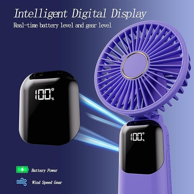 - 【Smart Digital Display】With the smart LED display design, you can know the small fan gear and remaining battery power in real time, and know when it needs to be recharged, make sure it's fully charged when you're out and about.