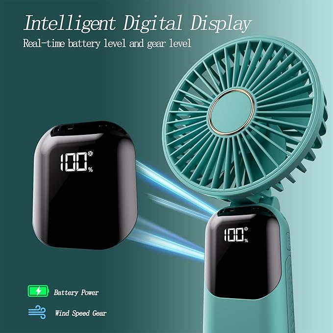 - 【Smart Digital Display】With the smart LED display design, you can know the small fan gear and remaining battery power in real time, and know when it needs to be recharged, make sure it's fully charged when you're out and about.