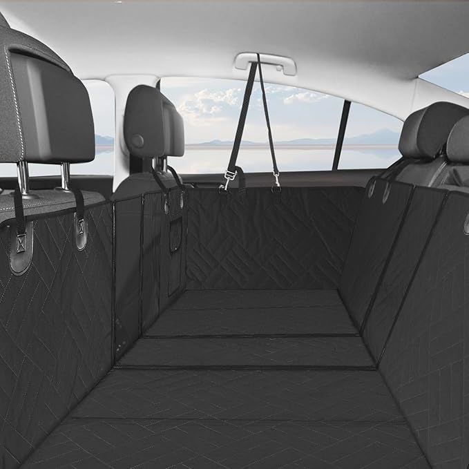- Waterproof & Sturdy & Comfortable:dog for caradopts premium material with 8 layers. 3-layer waterproof material, 600D Oxford cloth,advanced heat-pressing technology, PP Load-bearing Plate, quiled cotton and 35D sponge, waterproof and scratch resistant, more sturdy and comfortable.Which can better protect the car seat,maintain its original appearance after long-term use. Our back seat extender for dogs make your car for an more enjoyable trip.