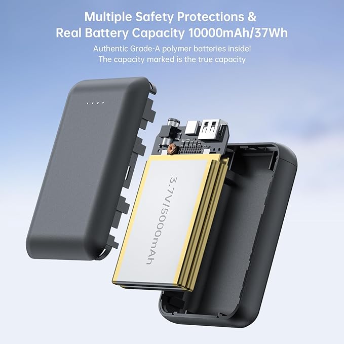- 【What You Get】 Includes 10000mAh battery, USB-C cable, adapter, manual. 24,7 US support. Backed by Amazon’s hassle-free returns.