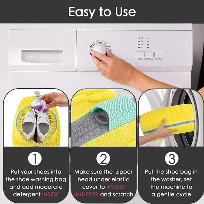 - Protected wash : Veradome shoe washing bag’s long microfiber strands movements makes your sneaker cleaning gentle yet deep cleaning. The shoe washing bag is designed for washing shoes, suitable for machine washing and drying operations, so you don't have to spend time scrubbing your shoes by hand and can spend more time on other activities.
