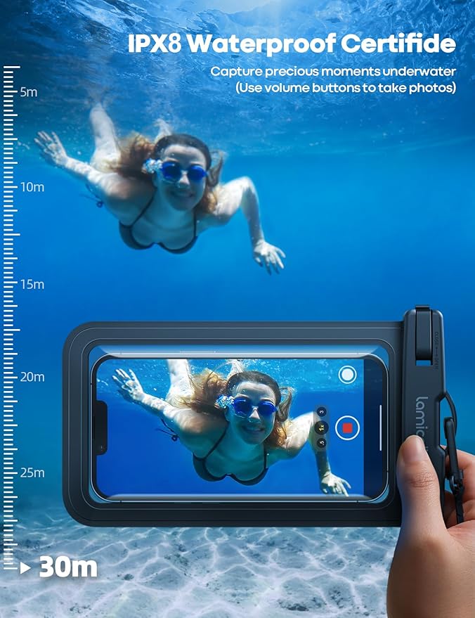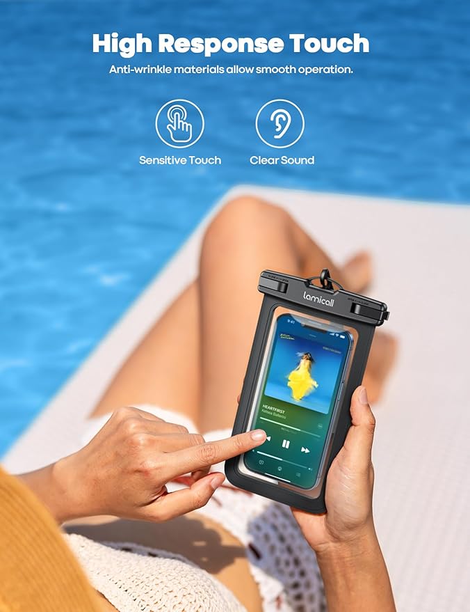 - HD Display & Shooting: Highly transparent material (99% light transmittance) keeps the contents of the mobile phone screen clearly displayed and the camera works normally. The waterproof case doesn't interfere with Face ID, video calls and shooting photos/ video, allowing you to record nice moment even underwater. One of the best cell phone accessories, must haves for travel, vacation, cruise, boat, kayak, etc.