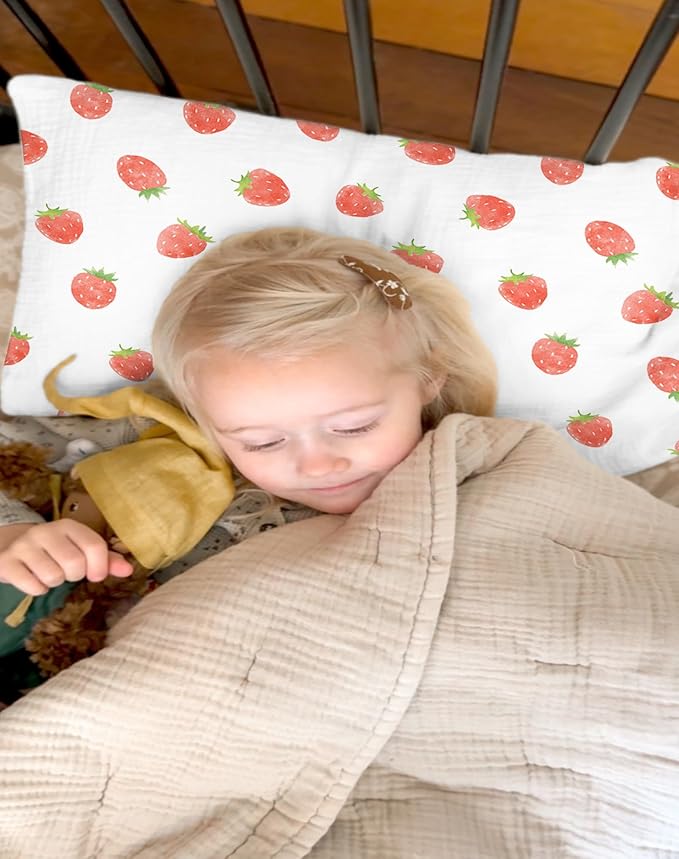 Toddler Pillowcases for 13"x18" Pillow 2 Pack, Muslin Small Toddler Baby Kids Travel Pillow Covers for Boys Girls with Envelope Closure (Strawberry & Pale Pink, 13 x 18 Inch)
