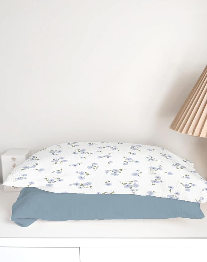 Toddler Pillowcases for 13"x18" Pillow 2 Pack, Muslin Small Toddler Baby Kids Travel Pillow Covers for Boys Girls with Envelope Closure (Flower I & Light Blue, 13 x 18 Inch)