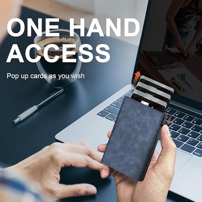 - QUICK ACCESS: A gentle press of the button allows you swift card access in this men's wallet, while the smart lever mechanism prevents any accidental card spills.