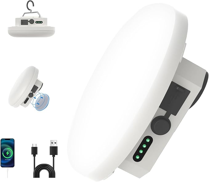- 【High lumen & Easy to use】4000LM outdoor hanging tent lights can illuminate an area of 200 square meters. equipped with a hook and magnet at the bottom. can be hung high to get the best light source or magnetically attached to any place with iron.