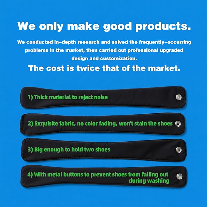 - [ Solve the Problem of Shoes Falling Out During Washing ] : The high-speed operation of the washing machine generates a pulling force that can cause zippers to open automatically, resulting in shoes falling out. To address this, we use metal buckles instead of plastic ones to prevent this from happening