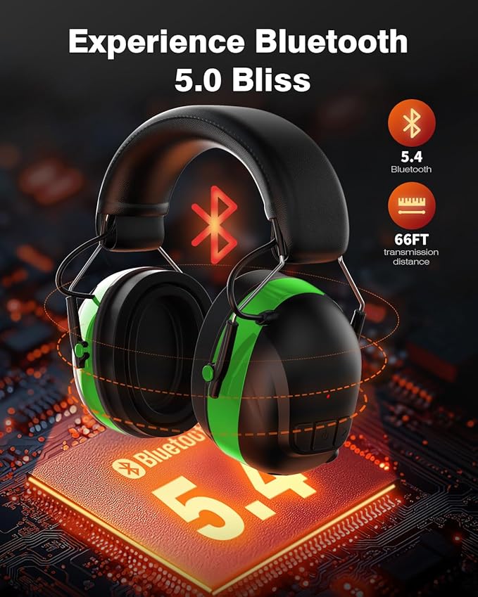 Gel Cushions Ear Muffs, Bluetooth 5.4 Hearing Protection Headphones with 1200mAh Battery, 120H Working Time, 30dB SNR, Larger Buttons for Easy Operation, Superior Stereo Sound Quality