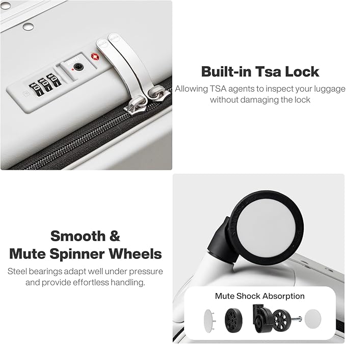 - 【High Quality Accessories】Integrated TSA-certified combination lock allows hassle-free customs inspections. High-precision dual-row wheel with TPE rubber damping absorbs shocks, enabling 360° silent glide. YKK brand zipper designed for long term use
