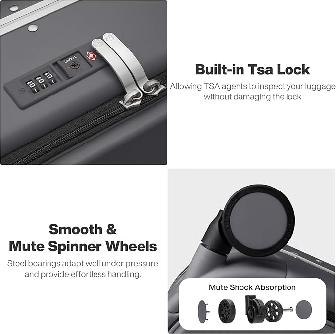 - 【High Quality Accessories】Integrated TSA-certified combination lock allows hassle-free customs inspections. High-precision dual-row wheel with TPE rubber damping absorbs shocks, enabling 360° silent glide. YKK brand zipper designed for long term use