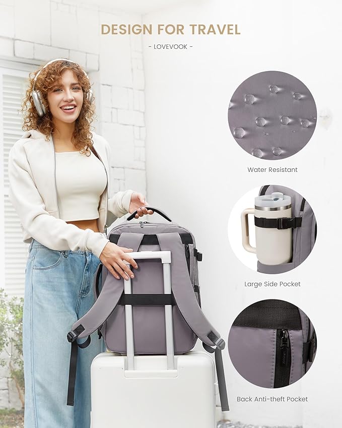 LOVEVOOK Travel Backpack for Women & Men, 40L Large Carry On Backpack Airline Approved, TSA Personal Item Weekender Bag, Water Resistant Laptop Backpack with 3 Packing Cubes for Travel Essentials