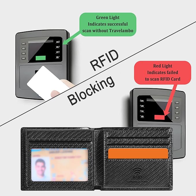 - RFID Blocking: Empower your digital security with our advanced RFID blocking technology, a unique metal composite that specifically counters 13.56 MHz and higher signals, safeguarding your personal information from prying eyes.