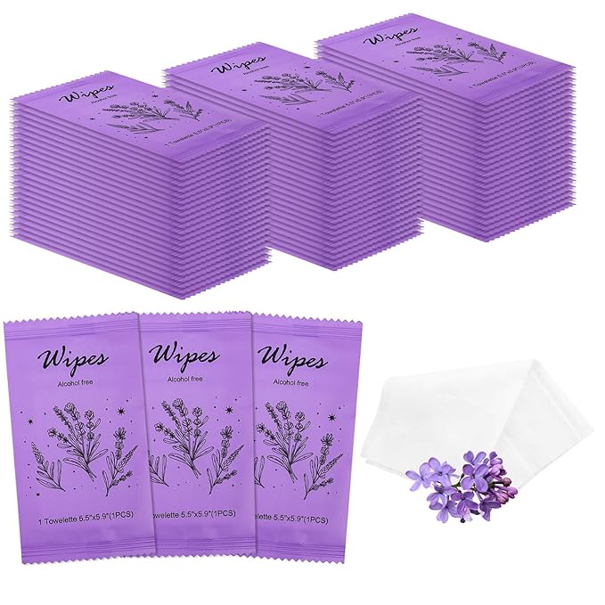 - 1.Sufficient quantity: Each package includes a total of 60 wet wipes bulk travel size, lavender wet wipes 60 pieces, so you always have enough quantity when you need it, which you can share outdoors with friends, family and meet your daily needs