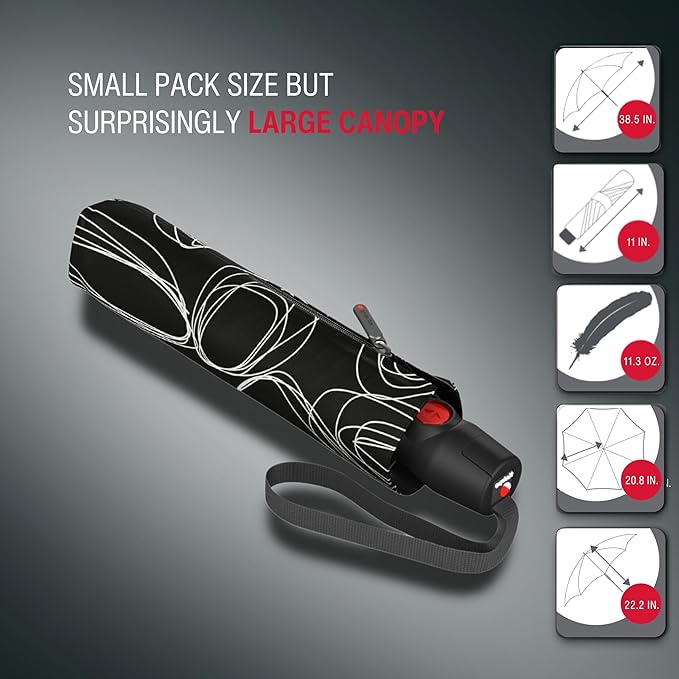 - Engineered for Extreme Wind Resistance – Designed to perform under pressure, the Knirps T.200 has been wind tunnel tested up to 93 mph (150 km/h), making it one of the most durable compact umbrellas on the market. A true feat of engineering for unpredictable, high-wind conditions.